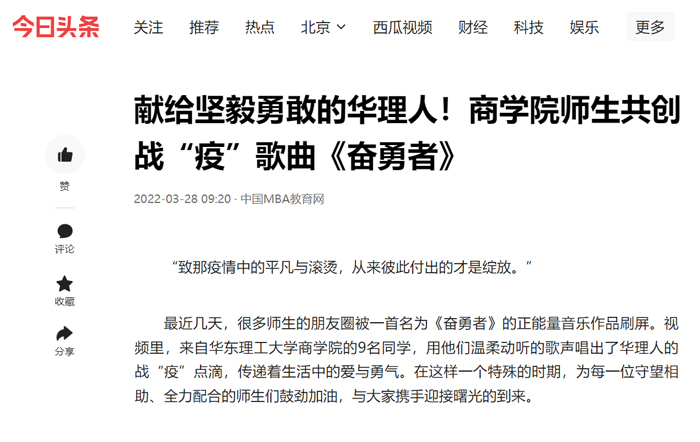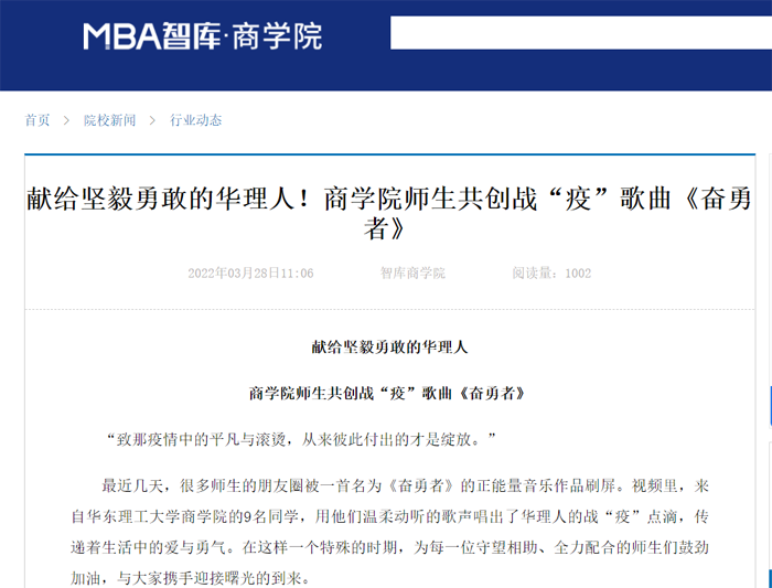 【媒体报道集锦】献给坚毅勇敢的华理人!商院师生共创战“疫”歌曲《奋勇者》